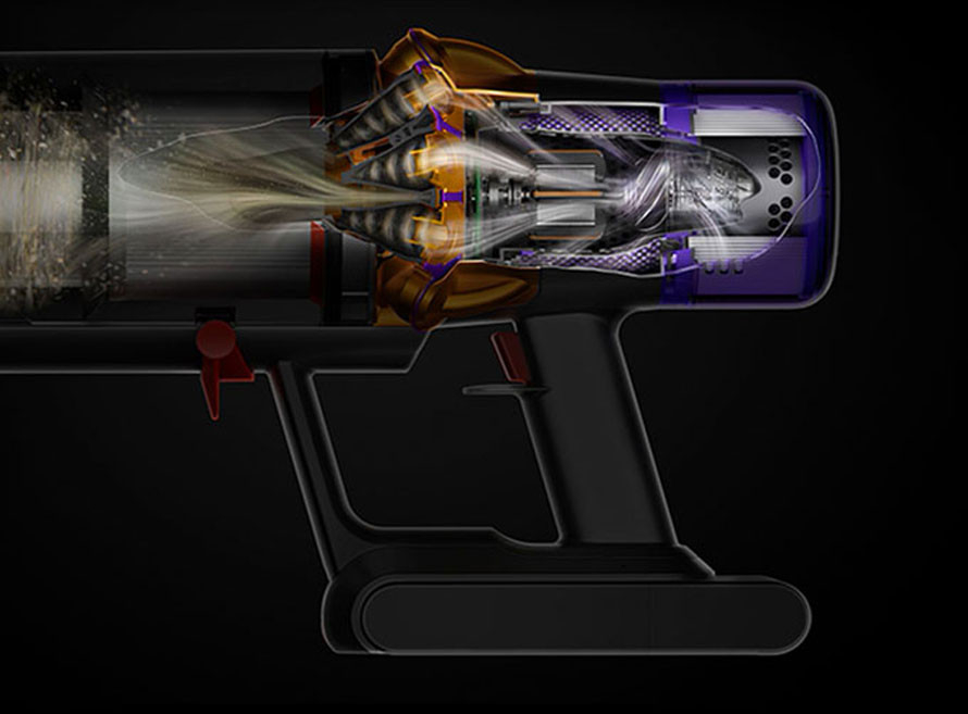 A Dyson Hyperdymium motor egy erős, könnyű digitális motor, amely akár 125 000 ford./perc fordulatszámot is képes elérni a mikroszkopikus por és a nagyobb méretű szennyeződések felszívásához.