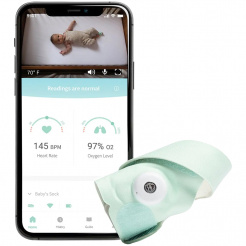 - 0-18 hónapos csecsemőknek, Vezeték nélküli gyorstöltés, Akár 16 órás akkumulátor-üzemidő, Pulzus- és oxigénszint megfigyelés, 4 db zoknit tartalmazó csomag