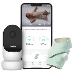 - Owlet intelligens zokni és kamera készlete, Csatlakozás mobilalkalmazáson keresztül, Hang- és mozgásriasztások, Sírásérzékelés, Prediktív alvástechnológia, Videóklipek, 4 zokni mellékelve