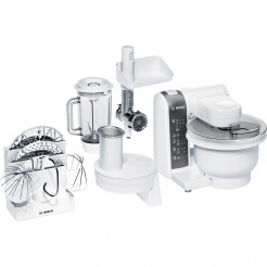 A BOSCH MUM4855 konyhai robotgép sokoldalú segítsége lesz konyhájában. Elvégzi az összes knehéz munkát a konyhában, miközben Ön szabadidejére összpontosíthat. Ezzel a többfunkciós robottal a főzés és a sütés is gyerekjáték lesz. Működése nagyon egyszerű. Gondoskodik a reszelésről, szeletelésről, darálásról, dagasztásról és keverésről. Turmixgépben pürét készíthet, a húsdaráló pedig könnyedén megbirkózik bármilyen típusú hússal. Az egyedülálló dagasztórendszer minden tésztaféleséget alaposan megdolgoz. Ezt követően könnyedén szétszedhető és a munka befejezése után egyszerűen elmosható.