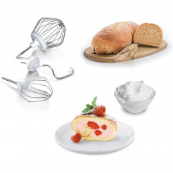 Egy ideális tálat nem lehet pusztán a mérete alapján megítélni. A használt tartozékokhoz illeszkedő forma különösen fontos a legjobb eredmény elérése érdekében. A 3,9 l-es műanyag tál kis mennyiségekhez vagy akár 2 kg piskótatészta vagy 1,5 kg kelt tészta feldolgozására is alkalmas.