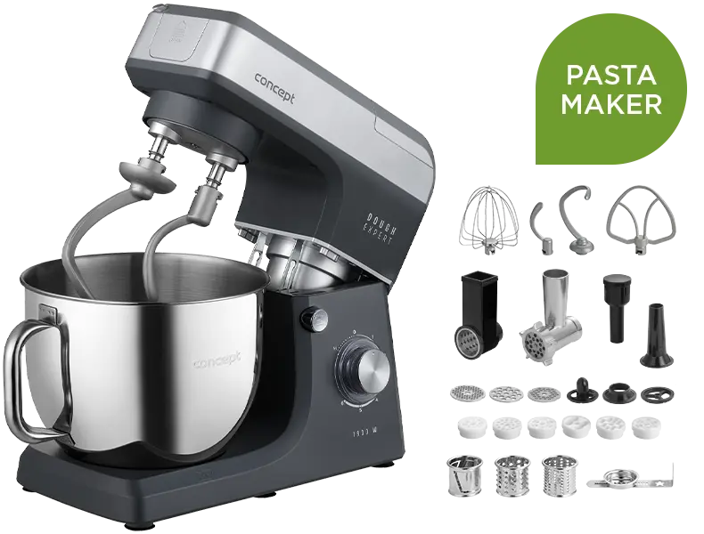 A DOUGH EXPERT nem egy közönséges konyhai robotgép - ez az élesztős tészták specialistája. A hagyományos modellekhez képest dupla dagasztóhoroggal és praktikus tálmelegítő funkcióval rendelkezik, amelynek köszönhetően a tésztát tökéletesen feldolgozza és ideálisan keleszti. Természetesen más főzési feladatokat - habverés, keverés vagy turmixolás- is el tud végezni. A tartozékok széles választékának köszönhetően könnyedén megsüthet húst, tölthet kolbászt, készíthet házi tésztát és édességet. Kompakt kialakítása több készülék funkcióit rejti magában, így helyet takarít meg a pulton és az Ön idejét. Egy robot, végtelen lehetőségek - tökéletes választás minden modern konyhába.