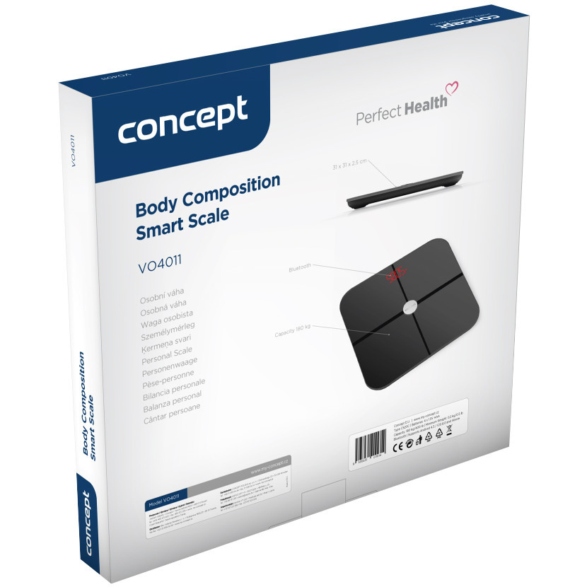 A Concept VO4011 Perfect Health intelligens személymérleggel számontarthatja egészségét. A testsúlyon kívül további 12 paramétert tud elemezni, pl. testzsír, izomtömeg vagy anyagcsere kor. 180 kg-os terhelhetőséget ér el, minimum 0,2 kg-os mérhető értékkel.