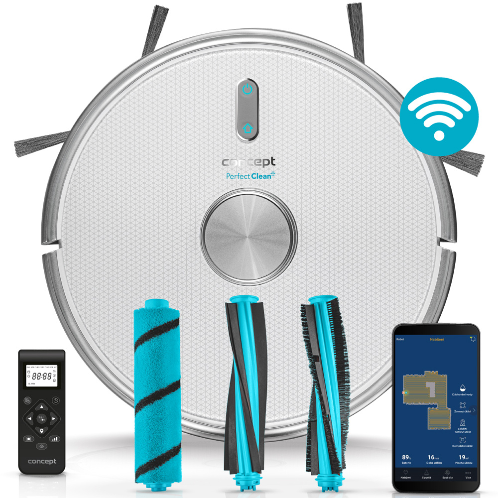 Robotporszívó felmosó funkcióval. A Concept VR3120 2 az 1-ben Perfect Clean Laser vezérlését a mobiltelefonján található Concept Home alkalmazás vagy a távirányító segítségével vezérelheti. Válasszon egyet a 3 tisztítási mód közül, tervezze meg a késleltetett indítást, nézze meg a tisztítási folyamatot, állítsa be a tiltott zónákat és még sok mást.