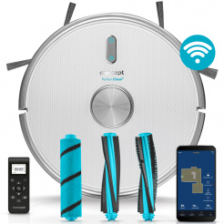 A robot csomagolásában 2 portartály található. Egy nagy kapacitású 600 ml a mindennapos száraz porszívózásra, a másik kombinálja a klasszikus portartályt a feltörléshez szükséges víztartállyal és elektronikus vezérlésű szivattyúval rendelkezik. Ez a robotnak lehetővé teszi a porszívózást és feltörlést is. Így két tisztítást érhet el rekord idő alatt. Az alkalmazással beállíthatja a víz áramlását a szennyezés mértékének megfelelően alacsony, normál vagy magas szintre. A tartály mikroszálas kendővel van ellátva, amely magához fogja a szennyeződést és tisztítás közben polírozza is a padlót. A szövet könnyen levehető és mosógépben mosható.