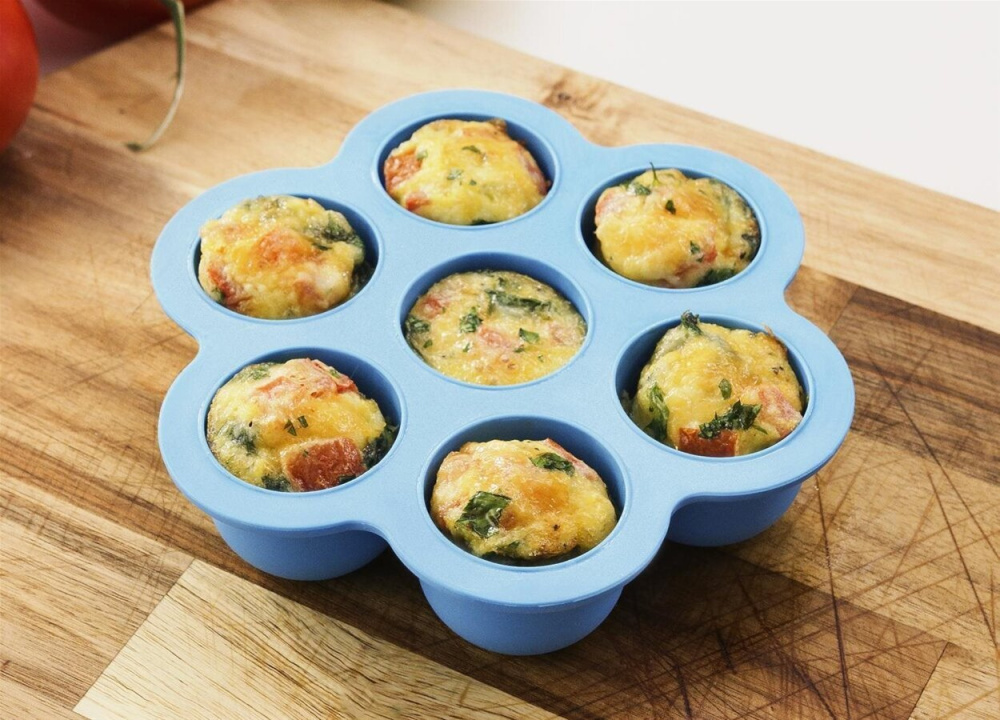 A 7 kerek formával ellátott szilikonforma tökéletes a reggelire való finom, friss, friss mini muffinok sütéséhez. Akár a hagyományos édes változatot választja, akár a sós tojásos muffinokat próbálja ki zöldségekkel, tökéletesen kisült darabokra számíthat. A forma hőálló, FDA tanúsítvánnyal rendelkező szilikonból készült. Ha a kész finomságokat a hűtőben tárolja, értékelni fogja a praktikus átlátszó fedelet.