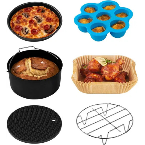 - Ez a Cosori tartozékkészlet tökéletesen kombinálható más, 5,5 liternél nagyobb űrtartalmú forrólevegős fritőzökkel is.