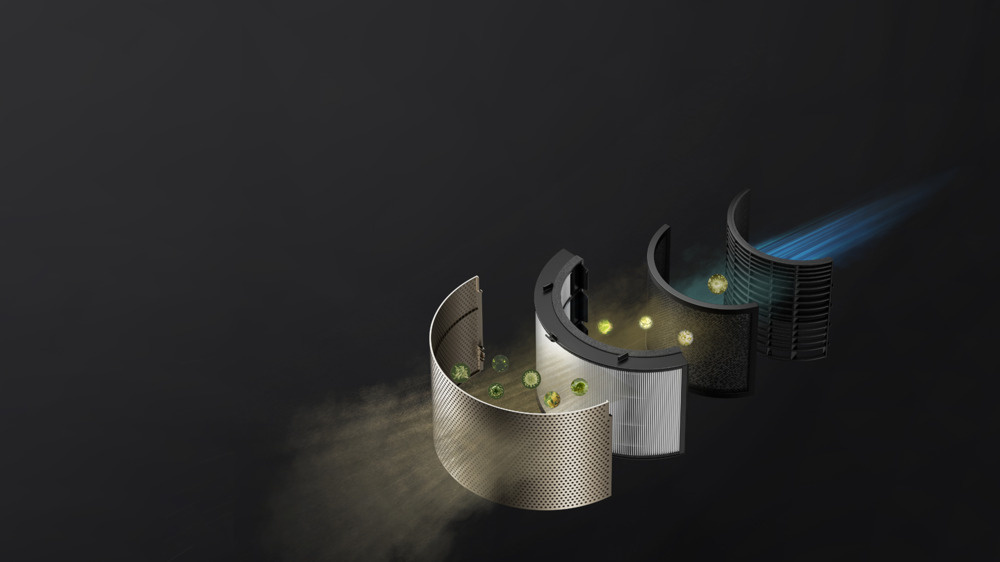 A légtisztító fejlett négyrétegű szűrőrendszert használ a levegő maximális tisztaságának biztosítása érdekében. A mágneses előszűrővel ellátott első réteg felfogja a nagyobb szennyeződéseket és hajszálakat. Ezt követi a nagy hatékonyságú M2 kompozit szűrő, amely a 0,3 mikron méretű részecskéket, köztük a vírusokat és allergéneket is eltávolítja. A harmadik, aktív szénből készült réteg 80%-os hatékonysággal nyeli el a káros gázokat. Az utolsó Formaldehid-Kata szűrő a veszélyes formaldehidet ártalmatlan összetevőkre bontja.