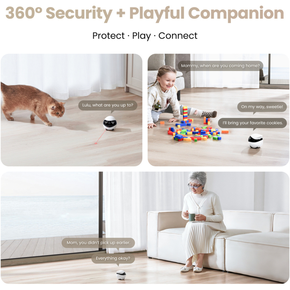 A szórakozás sosem ér véget az állatbarátok számára - az EBO Air 2 rendelkezik beépített lézersugáramely aktiválja a macskák és kutyák játékmódját. Elindíthatja manuálisan vagy távolról az alkalmazáson keresztülhogy szórakoztassa kedvencét, amikor Ön nincs otthon. A lézer természetesen és egyenletesen mozog, utánozva a valódi zsákmány mozgását. Az eredmény olyan szórakozás, amely ösztönzi az állat aktivitását és csökkenti a magányosságát. A robot így nem csak biztonsági eszközként szolgál, hanem társ a háziállatok számárahogy aktívan és szórakoztatóan töltsék el az Ön távollétében.