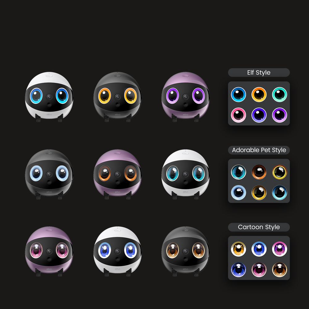 Két digitális kijelző a szemek cseréje személyiséget és érzelmeket kölcsönöz az EBO Air 2 Plusnak. A felhasználók beállíthatják szín, stílus és animációhogy a robot megjelenését a hangulatához vagy a környezetéhez igazítsa. A szemek reagálnak a különböző helyzetekre - például beszélgetés, töltés vagy mozgás közben -, hogy élénk, barátságos benyomást keltsenek.