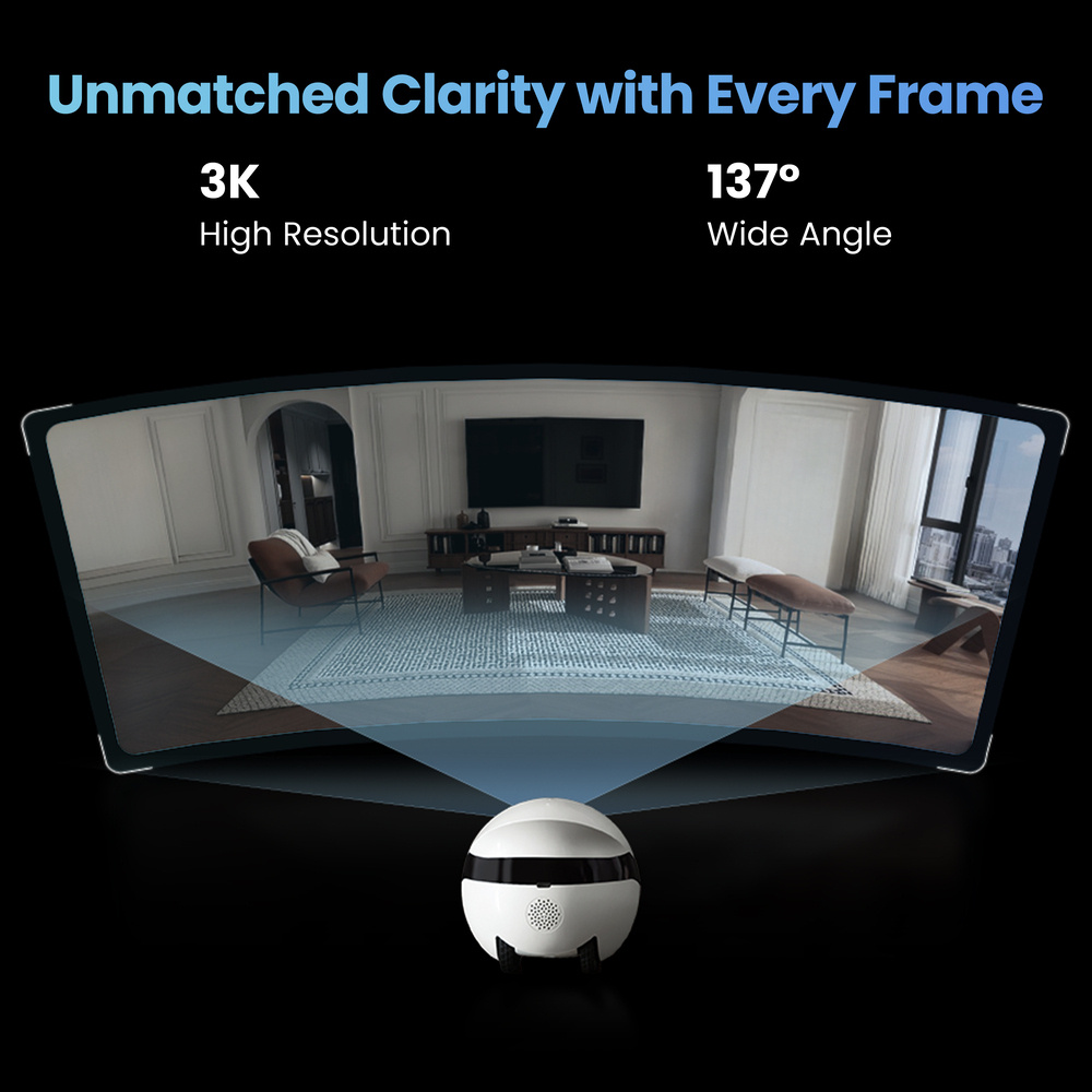 Beágyazott 3K kamera felbontással 2880 x 1620 kivételesen részletes képet nyújt, amely a finom mozgásoktól az arckifejezésekig mindent rögzít. 137°-os széles látószögű lencse biztosítja, hogy semmi ne kerüljön ki a látómezőből, még akkor sem, ha egy nagyobb helyiséget néz. Intelligens mesterséges intelligencia követés képes a mozgást érzékelni, automatikusan fókuszálni és videót vagy fényképet rögzíteni. A kamera sima mozgásával kombinálva az EBO Air 2 Plus teljesen új színvonalat kínál az otthoni felügyelet terén. Minden egyes videó (in MP4) és fényképek (JPG) élesek, valósághűek és ideálisak azonnali továbbításra vagy későbbi lejátszásra a beépített 32 GB-os microSD kártyaamely kiterjeszthető akár 256 GB.