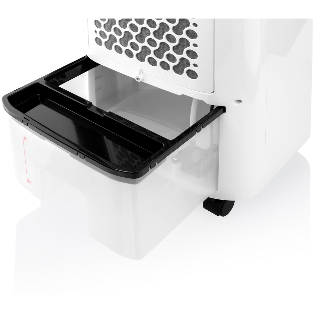 Innovatív 4 az 1-ben léghűtő mindössze 65 W-os energiafogyasztásával tökéletes megoldás az otthoni légkezeléshez. Ez a multifunkciós készülék négy alapfunkciót kínál - hűtés, párásítás és légtisztítás -, és klasszikus ventilátorként is funkcionál. Környezetbarát elven párologtatja a vizet kémiai adalékanyagok nélkül. A készülékhez tartozik egy tágas kivehető 10 literes víztartály, amelyhez speciális hűtődobozokat vagy hagyományos jégkockákat adhat a hűtőhatás fokozása érdekében. A hatékony mosható szűrő felfogja a nagyobb szennyeződéseket, például a porszemcséket.