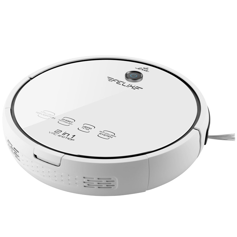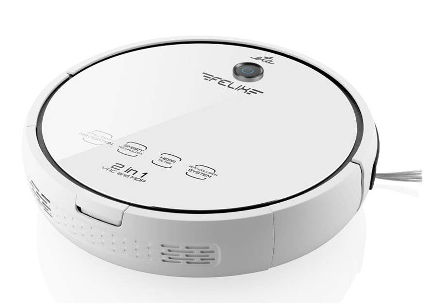 A 2 az 1-ben ETA Felix robotporszívó porszívóz és feltöröl. A praktikus ANTI-COLLISION rendszer biztosítja az érintésmentes akadályérzékelést és Ön állíthatja be a tisztítás idejét. A porszívó így önállóan is működhet távollétében.