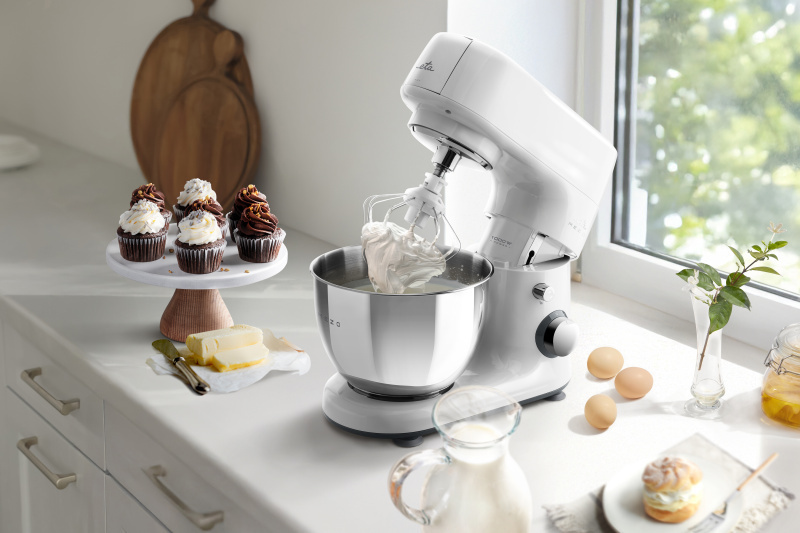 A robot kialakítása a mindennapi használat során a maximális praktikumra összpontosít. A 4 literes rozsdamentes acél tál elegendő helyet biztosít a leggyakoribb receptek elkészítéséhez. A folyamatos fordulatszám-szabályozásnak köszönhetően pontosan szabályozhatja a keverési folyamatot, és minden előkészítéssel optimális eredményt érhet el. A csomag tartalmaz egy praktikus átlátszó tálfedelet is, amely megakadályozza a hozzávalók kifröccsenését keverés közben. Minden eltávolítható alkatrészt úgy terveztek, hogy könnyen kezelhető és tisztítható legyen, ami jelentősen leegyszerűsíti a készülék karbantartását.