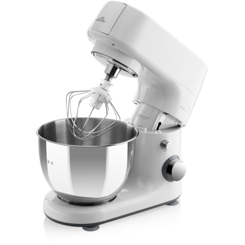 Az ETA Mezo III konyhai robotgép a kompakt méretek és a nagy teljesítmény tökéletes kombinációját képviseli. 1000 W-os bemeneti teljesítménnyel és fém fogaskerekekkel még az igényesebb konyhai feladatokat is megbirkózik. 35,5 x 32 x 21,5 cm-es méretével nem foglal sok helyet a konyhapulton, mégis bőséges térfogatot kínál egy 4 literes rozsdamentes acél edényhez. A bolygókeverő rendszer biztosítja az összes összetevő tökéletes összekeverését, míg a folyamatos sebességszabályozás lehetővé teszi a pontos beállítást az elkészítendő összetevők típusának megfelelően.