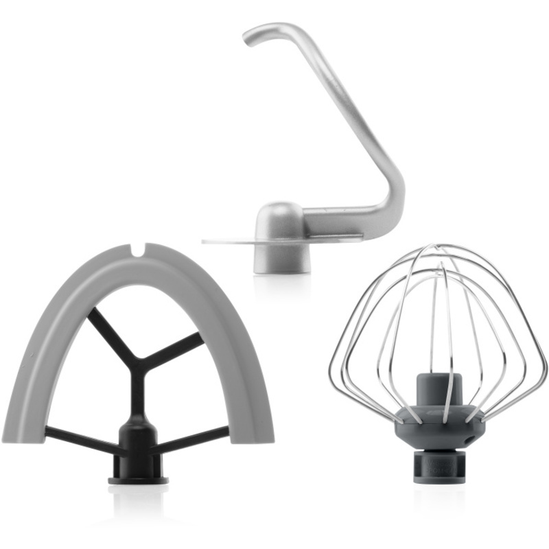 - Tartozékok: flexi habverő, tésztahorog, aprító, átlátszó tálfedél, habverő