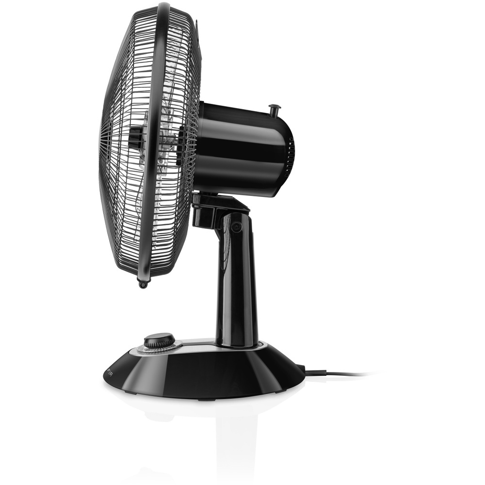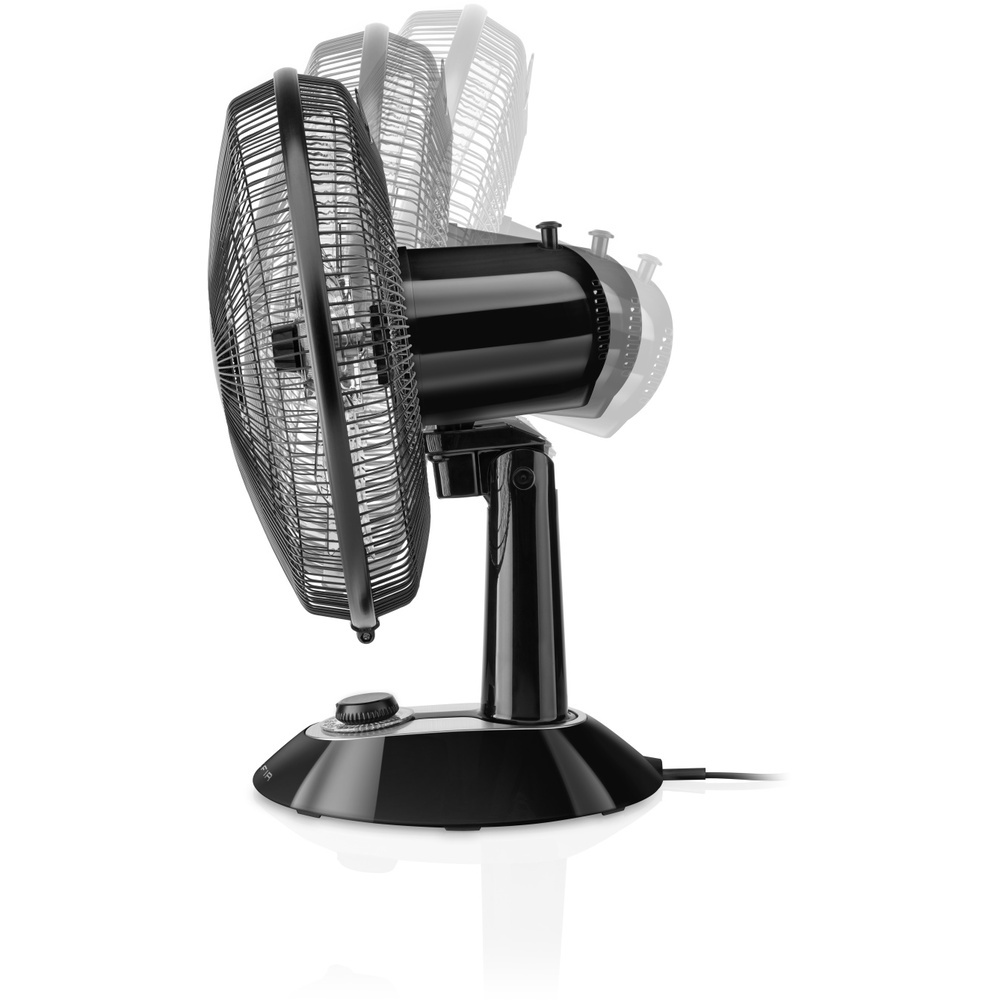 A bemutatása kompakt asztali ventilátoramely nélkülözhetetlen társunk lesz a forró nyári napokon. Fekete dizájnja elegánsan illeszkedik bármilyen térbe, legyen szó otthonról, irodáról vagy hétvégi házról. A 30 centiméter átmérőjű és öt erőteljes lapátjával optimális légáramlást biztosít, miközben minimalista megjelenést biztosít. A háttérvilágítással ellátott kezelőpanel modern jelleget kölcsönöz a készüléknek, és még este is könnyen kezelhetővé teszi.