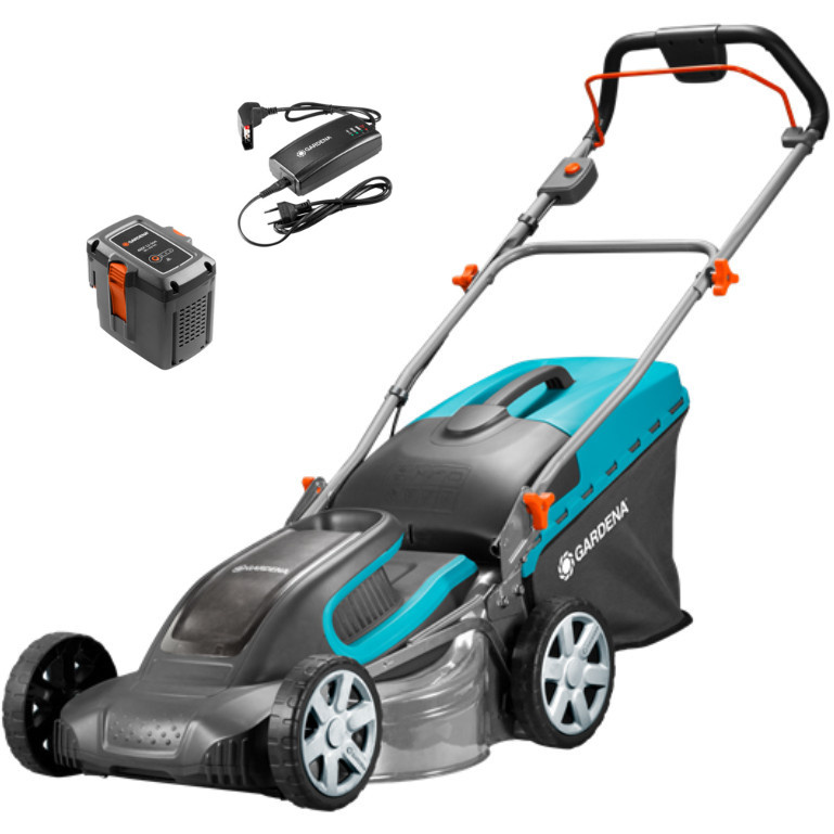 A Gardena PowerMax Li-40/41 azonnali használatra kész készletben, gyorstöltővel és egy 4,2 Ah-s 40 V-os POWER FOR ALL akkumulátorral kapható.