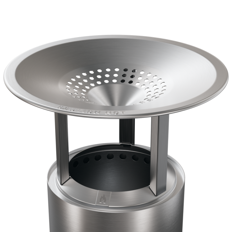 Hőterelő a Solo Stove Mesa füstmentes kandallóhoz a kandalló körüli kényelmesebb ülőhelyért. Az eredetileg rozsdamentes acélkoronggal ellátott kúp hatékonyan osztja el a Mesa modell hőjét a tűztől akár 60 cm-re is. A terelőt lábakon is lehet használni, vagy közvetlenül a kandallóra helyezni. A terelő rozsdamentes acélból készült, így hosszú évekig tart. Könnyen, további szerszámok nélkül felhelyezhető a kandallóra.