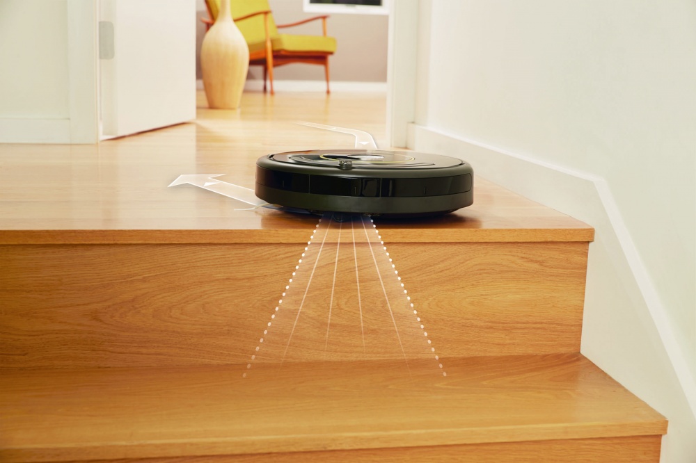 A robot alján elhelyezett speciális érzékelők biztonságosan érzékelhetik a robot alatti szabad helyet, és így teljesen kiküszöbölik a lépcsőn történő leesés lehetőségét. Roomba megáll, szépen megfordul, és folytatja a takarítást a kerekek alatti szilárd talajjal.