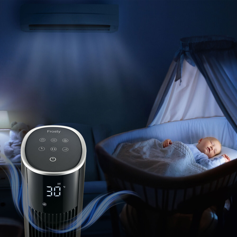 A karcsú , fekete színű Rohnson R-8803 léghűtő négy funkciót kínál egyetlen készülékben: hűtés, szellőztetés, ionizáció és légtisztítás. Nagy teljesítményű, 450,24 m³/h légáramával és tágas, 3 literes víztartályával akár 3-4°C-kal is hatékonyan képes lehűteni egy helyiséget. A készülék legfeljebb 45 m²-es helyiségekbe alkalmas , és mindössze 60 W-os energiafogyasztásának köszönhetően energiatakarékos.