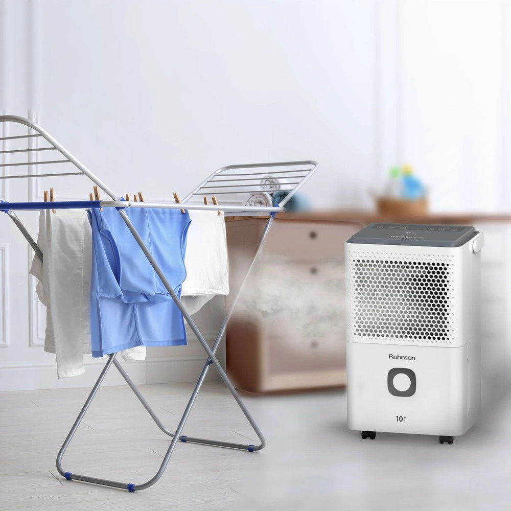 A forradalmi R-91310 párátlanító átfogó megoldást kínál otthona optimális levegőminőségének biztosítására. S napi 10 literes párátlanítási kapacitással hatékonyan szabályozza a páratartalmat 45 m²-ig terjedő helyiségekben. A készülék fejlett HEPA szűrő a következőkkel együtt ionizációs funkció, amely nemcsak a párátlanítást, hanem a levegő alapos tisztítását is biztosítja. Az ergonómikus légáramlási rendszernek köszönhetően alacsony fordulatszámon, mindössze 37 dBamit különösen azok fognak értékelni, akik a készüléket a hálószobában vagy a dolgozószobában tervezik használni. Maximális légáramlás 120 m³/h a kétféle ventilátorsebességgel együtt lehetővé teszi az aktuális igényekhez való rugalmas alkalmazkodást.