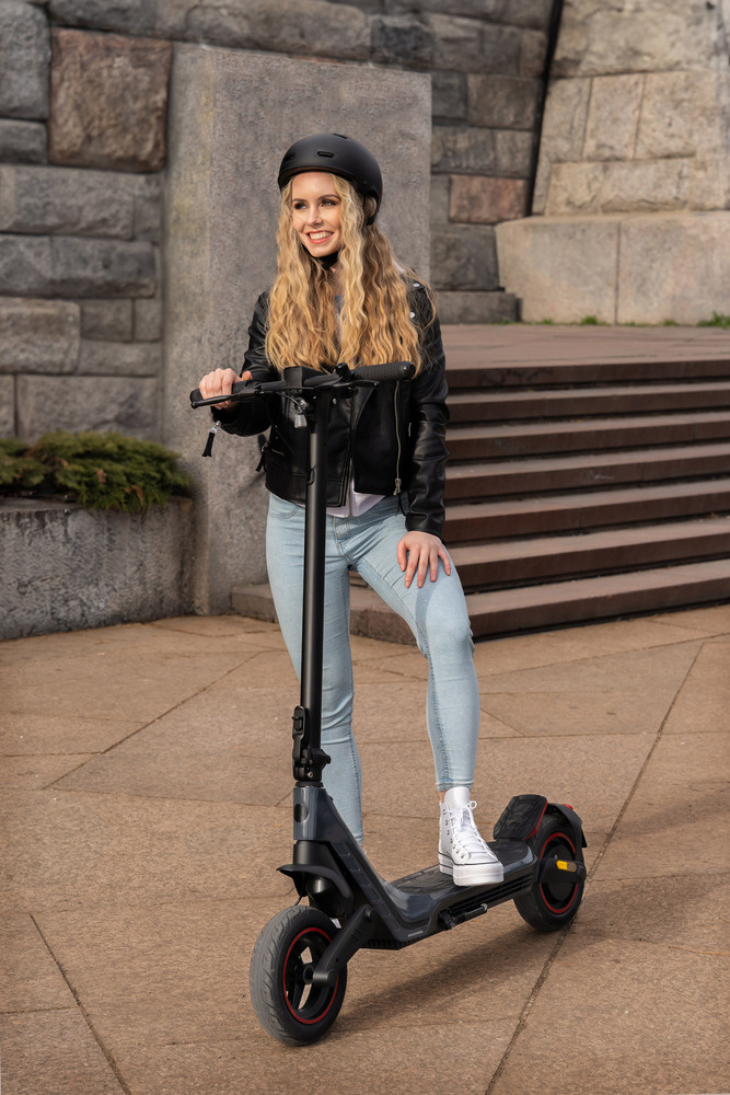 A városi elektromos robogó nagy teljesítményű, 350 W-os motorral van felszerelve, amely akár 25 km/h sebességgel is dinamikus utazást biztosít. Négy vezetési módot kínál: SPORT (25 km/h), DRIVE (20 km/h), ECO (10 km/h) és WALK (6 km/h). A megnövelt teljesítmény lehetővé teszi, hogy akár 15°-os emelkedőket is megmásszon, ami ideális dombos városi terepen.