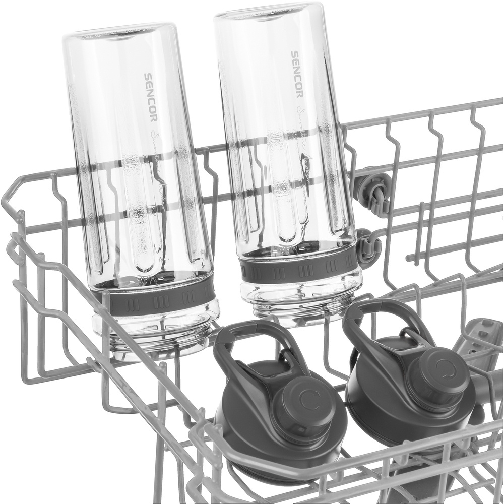 A csomagban két darab 0,6 literes sportpalackot találsz , amelyek az Eastman amerikai Tritanból készültek . Az anyag BPA-mentes, ütésálló és mosogatógépben mosható. A palackok tökéletesen záródnak, és elférnek a kerékpártartóban és az autóban. A csúszásmentes tapadókorongok és a beépített biztonsági mechanizmus garantálja a stabilitást a keverési folyamat során.