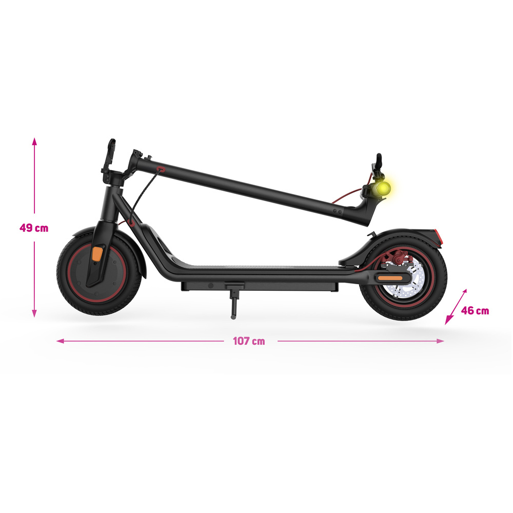 A városi elektromos robogó nagy teljesítményű, 350 W-os motorral van felszerelve, amely akár 25 km/h sebességgel is dinamikus utazást biztosít. Négy menetmódot kínál: SPORT (25 km/h), DRIVE (20 km/h), ECO (10 km/h) és WALK (6 km/h). A megnövelt teljesítmény lehetővé teszi, hogy akár 15°-os emelkedőket is megmásszon, ami ideális dombos városi terepen.