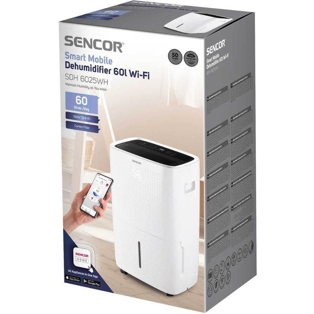 A túlzott nedvesség veszélyt jelent az egészségre és a háztartási bútorokra. Az SDH 6025WH 30 °C hőmérsékleten és 80 százalékos relatív páratartalom mellett naponta akár 60 liter párát is képes párátlanítani. Hatékonyan fedezi a 44 és 127 négyzetméter közötti tereket, akár 330 m³ térfogattal. A vizet egy nagy kapacitású, nyolc literes tartályban gyűjti össze, vagy egy lefolyócsövön keresztül közvetlenül a hulladékba üríthető, így nincs szükség a gyakori ürítésre.