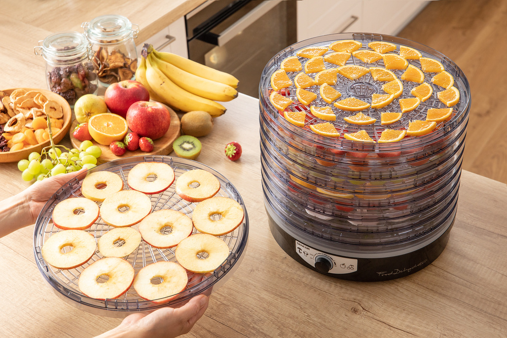 A szárító az élelmiszerek széles skáláját tudja kezelni a gyümölcsöktől és zöldségektől kezdve a gombákon és fűszernövényeken át egészen a szárított húsokig. Minden tálca kiváló minőségű hőálló műanyagból készült, mosogatógépben mosható, és speciális kialakításuk elősegíti az egyenletes légáramlást az optimális szárítási eredmények érdekében.