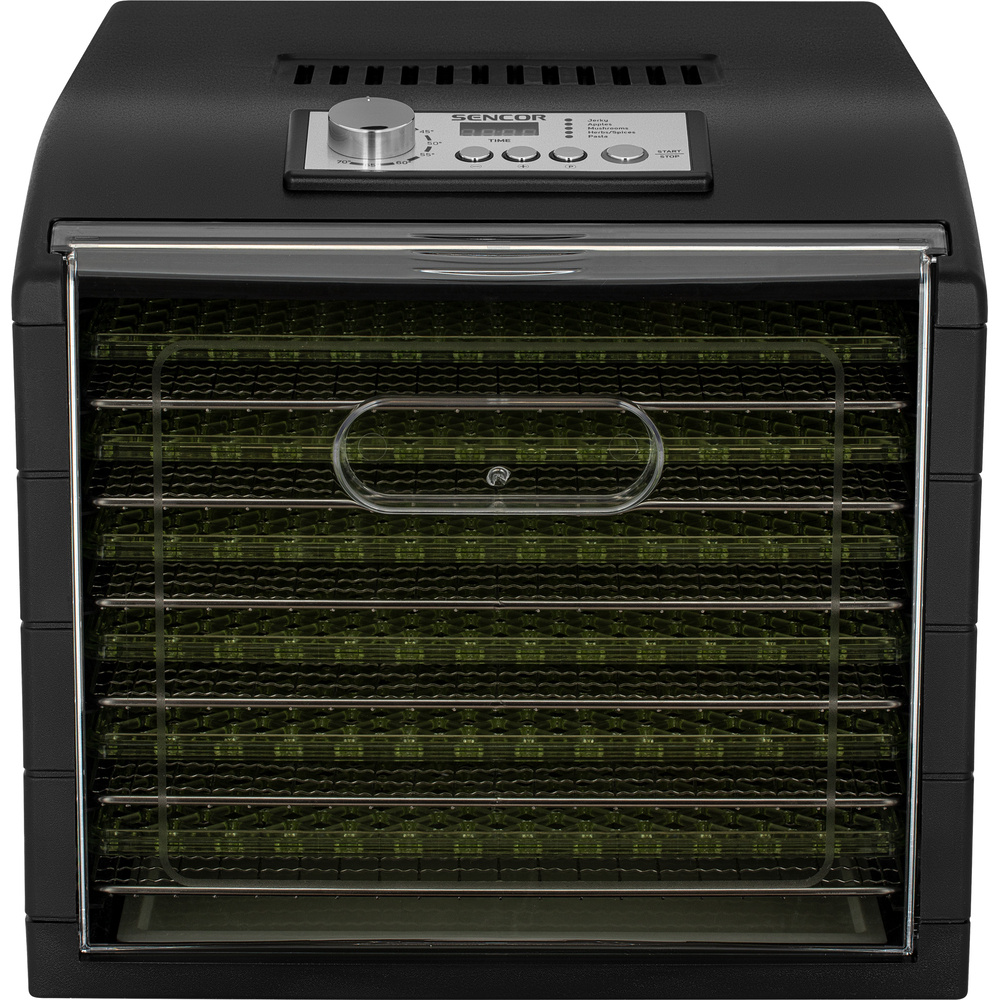 A LED kijelzővel ellátott elektronikus vezérlőpanel lehetővé teszi a hőmérséklet beállítását 35-70 °C között. Az SFD 6601BK széles körű felhasználási lehetőségeket kínál a gyümölcschipsek, szárított fűszernövények és házi készítésű szárított szárított húsok készítésétől kezdve a RAW ételek elkészítéséig egy speciális, teli tálcán. Az intuitív vezérlés digitális időzítővel és átlátszó ajtóval biztosítja a teljes szárítási folyamat tökéletes ellenőrzését.