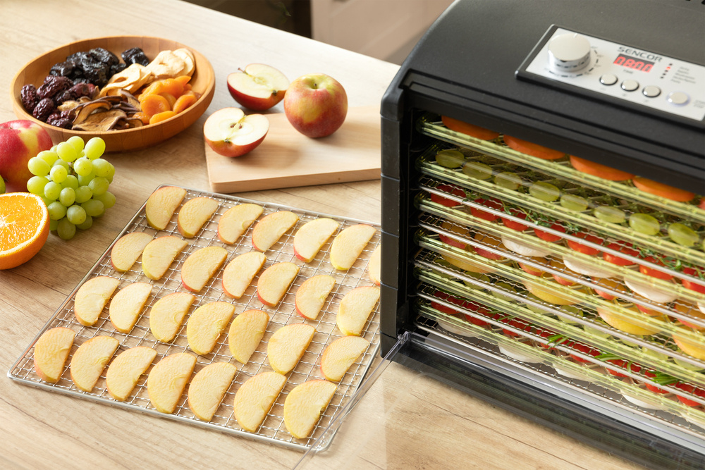 Az öt előre beállított programmal a szárítás igazán egyszerűvé válik. Egy gombnyomással aktiválhatja az alma, hús, gomba, fűszernövények vagy tészta szárítására optimalizált programot. A LED kijelzők világosan jelzik a teljes folyamat előrehaladását, és a szárító automatikusan kikapcsol, amikor befejezte a szárítást.