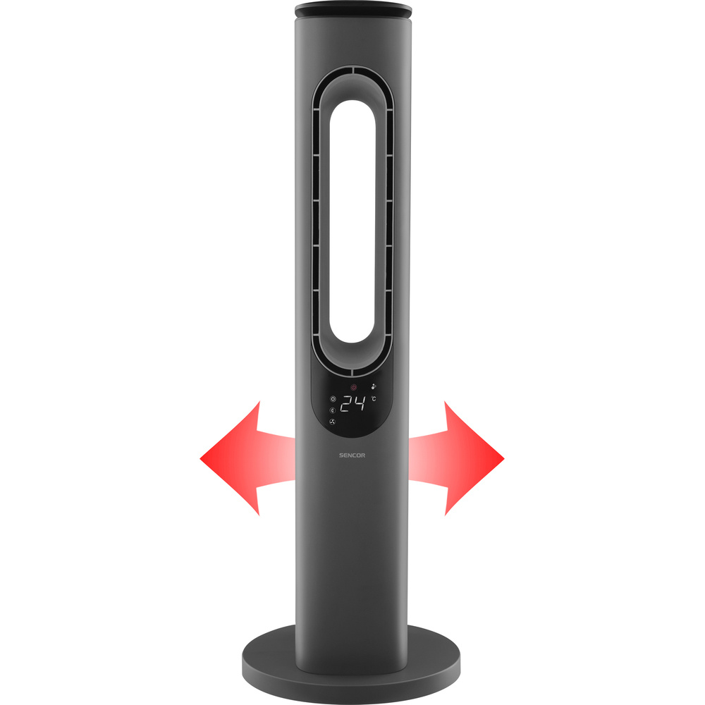 Innovatív 95 cm magas propeller nélküli fűtőberendezés a végső megoldás a különböző terek gyors és hatékony fűtésére. Fejlett PTC technológia kerámia cellákkalamelyek különösen hatékonyak alacsonyabb szobahőmérsékleten. A készülék rugalmas teljesítménybeállításokat kínál - választhat az üzemmódok között 1200 W és 2000 W fűtéshez, vagy használhatja a 45 W bemeneti teljesítményű, önálló ventilátoros üzemmódot vízszintes oszcilláció 50°-os tartománybanamely biztosítja a meleg levegő egyenletes eloszlását minden irányban. A vezérlés mind a következőkkel lehetséges érintőképernyő a készülék testén, vagy a mellékelt távirányítóval.