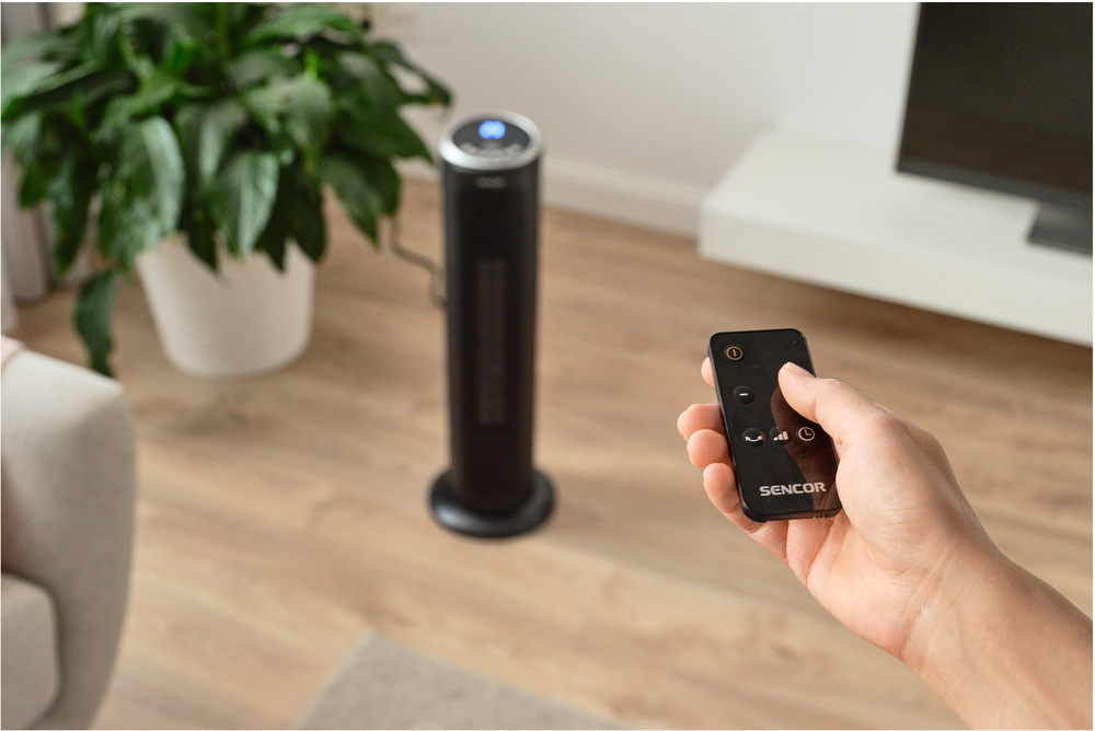 Innovatív sFH 8990BK oszlopfűtő a végső megoldás legfeljebb 24 m²-es helyiségek fűtésére. Modern PTC technológia kerámia cellákkalamelyek rendkívül hatékony légfűtést biztosítanak. A hagyományos fűtőtestekhez képest a kerámiacellák lényegesen gyorsabban érik el a kívánt hőmérsékletet, és nagyobb hatékonyságot biztosítanak. Fontos előnye, hogy nem történik a levegő kiszáradása vagy az oxigén elégetése, ami kellemesebb légzési környezetet teremt. A fűtőberendezés három üzemmóddal rendelkezik, beleértve a különálló ventilátort és két teljesítményszintet - 1300 W a gazdaságos működéshez a 2200 W a gyors fűtéshez.