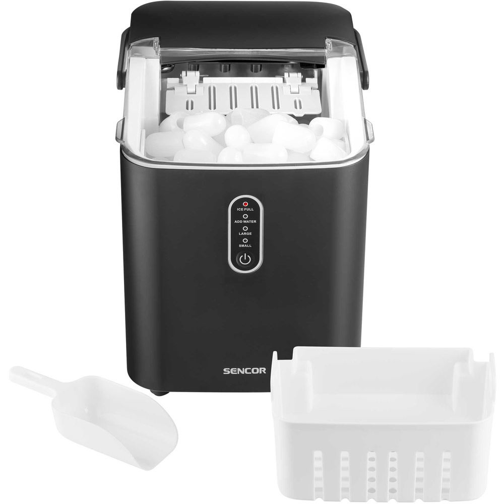 Jégkészítő SENCOR SIM 2500BK jellemzőek a 268 × 217 × 282 mm-es praktikus méretei, amelyek alkalmassá teszik a kisebb helyiségekbe való elhelyezésre. Tömege mindössze 6,1 kg az ergonomikus fogantyú pedig könnyen hordozható. A fekete műanyag test modernnek tűnik, és bármilyen belső térbe illik, legyen az városi konyha, lakókocsi vagy hajó.