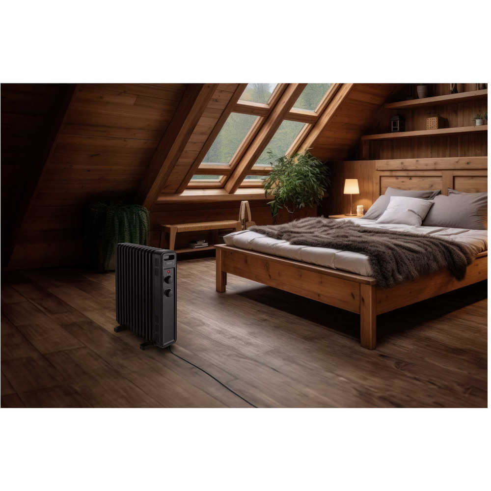 Fedezze fel a fűtés új dimenzióját egy elektromos olajradiátorral, amely a következőket kínálja maximális teljesítmény 2500 W három teljesítményszintben. Az 1000 W, 1500 W és 2500 W közötti választási lehetőséggel könnyedén az aktuális igényekhez igazíthatja a fűtést. Innovatív kialakítás 13 FLAT SHAPE fűtőelemek biztosítja az optimális hőeloszlást és a fokozott biztonságot az éles szélek kiküszöbölésével. A vezérlés két klasszikus forgótárcsán keresztül intuitív - a felső a teljesítményszintet, az alsó a termosztátot szabályozza. Ez a modell elegáns fehér (SOH 3413WH) vagy fekete (SOH 3513BK) színben kapható.