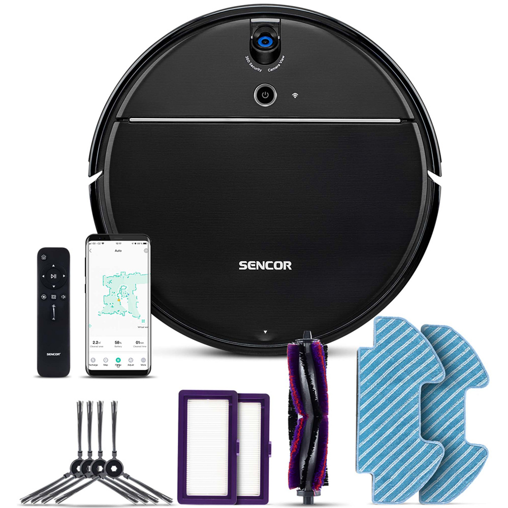 Elegáns és erőteljes háztartási segítő. Ez a Sencor SRV 8550BK. Ideális szőnyegek, hajópadlók, parketta, linóleum és csempe tisztítására. Nagyon csendes üzemének köszönhetően Ön, de házikedvencei nem tudnak róla. A robotporszívó Sencor nav. 16.0 navigációs rendszerrel rendelkezik, amely giroszkóp, infravörös érzékelők, lépcsőérzékelő és egyéb akadályérzékelők segítségével tájékozódik a térben. Ezenkívül rendelkezik kamerarendszerrel a videó és a hang interakciójához távolról. Automatikusan figyeli a szervizműveleteket a távirányító kijelzőjén megjelenő figyelmeztető üzenetek segítségével. Akár 90 perces akkumulátor-élettartamának köszönhetően könnyen tisztítja az egész háztartást, és ha ez nem elég, akkor a töltőállomásra megy feltöltődni, majd visszatér a takarításhoz.