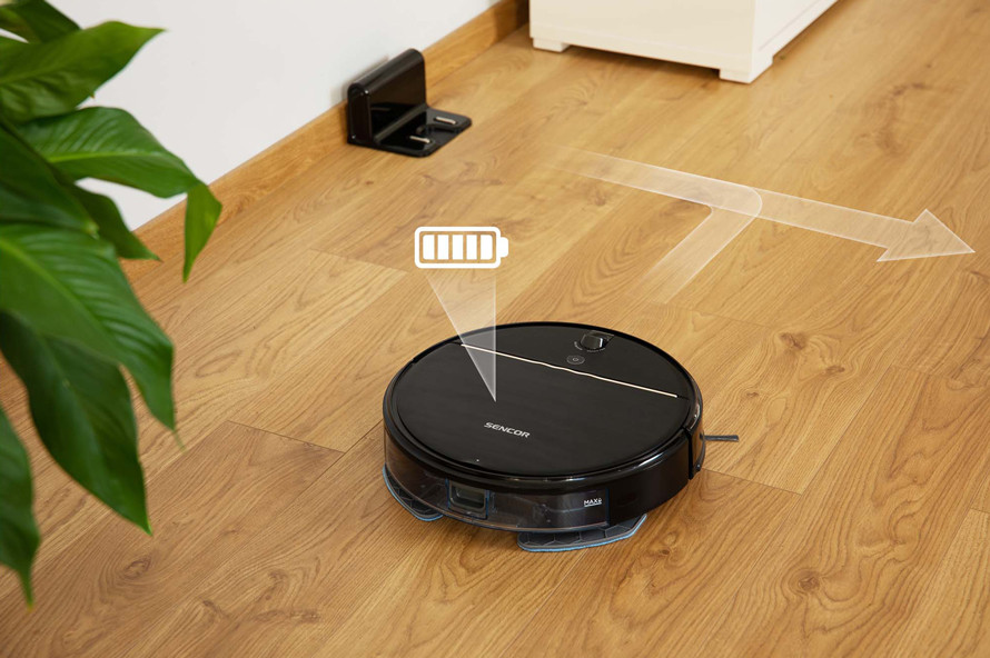 A Sencor SRV 8550BK robotporszívó valóban nagy mennyiségű munkát képes egy feltöltéssel elvégezni - Üzemidő egy feltöltésre akár 90 perc. Ha porszívózás közben lemerül, akkor a lehető legrövidebb úton tér vissza a töltőállomásra, mert mindig pontosan tudja, hol van. Teljes feltöltés után pedig ott folytatja a takarítást, ahol abbahagyta, hogy az eredmény 100% legyen.