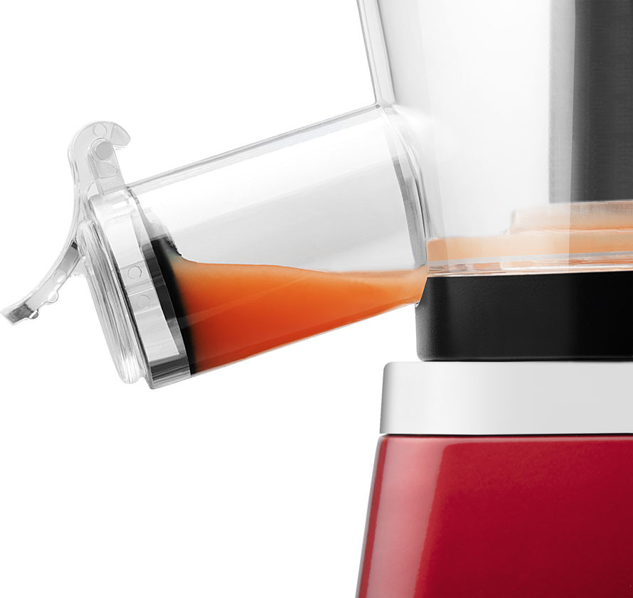 Ennek a gyümölcscentrifugának a működési elve a nyersanyagok lassú centrifugálásának rendszerén alapul. A forgó csiga először durvára őrli a behelyezett nyersanyagokat, majd a következő lépésben leválasztja a gyümölcslevet a pépből. Az így préselt gyümölcslé minimális rostot tartalmaz, ezért nagy tisztaságú, lassabb az oxidációja, valamint az értékes vitaminokat és enzimeket is megőrzi.
