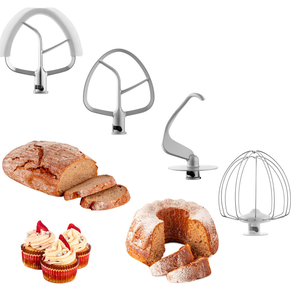 - Dagasztóhorog - nehéz tészták dagasztására alkalmas, pl. kenyér, pizza vagy tészta gyúrására.