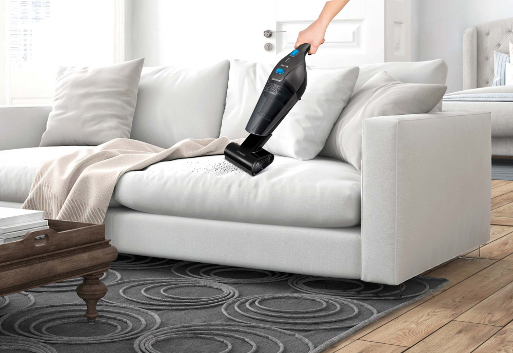 A háziállatok szőrükkel összekoszolhatják a kárpitokat, szőnyegeket és az ágyneműt. A kézi porszívóhoz egy speciális, a csomagban található "Cat & Dog Mini" tartozék csatlakoztatható. Ez a tartozék megbízhatóan eltávolítja a szőröket, hajszálakat és fonalakat a kárpitokról vagy szőnyegekről.