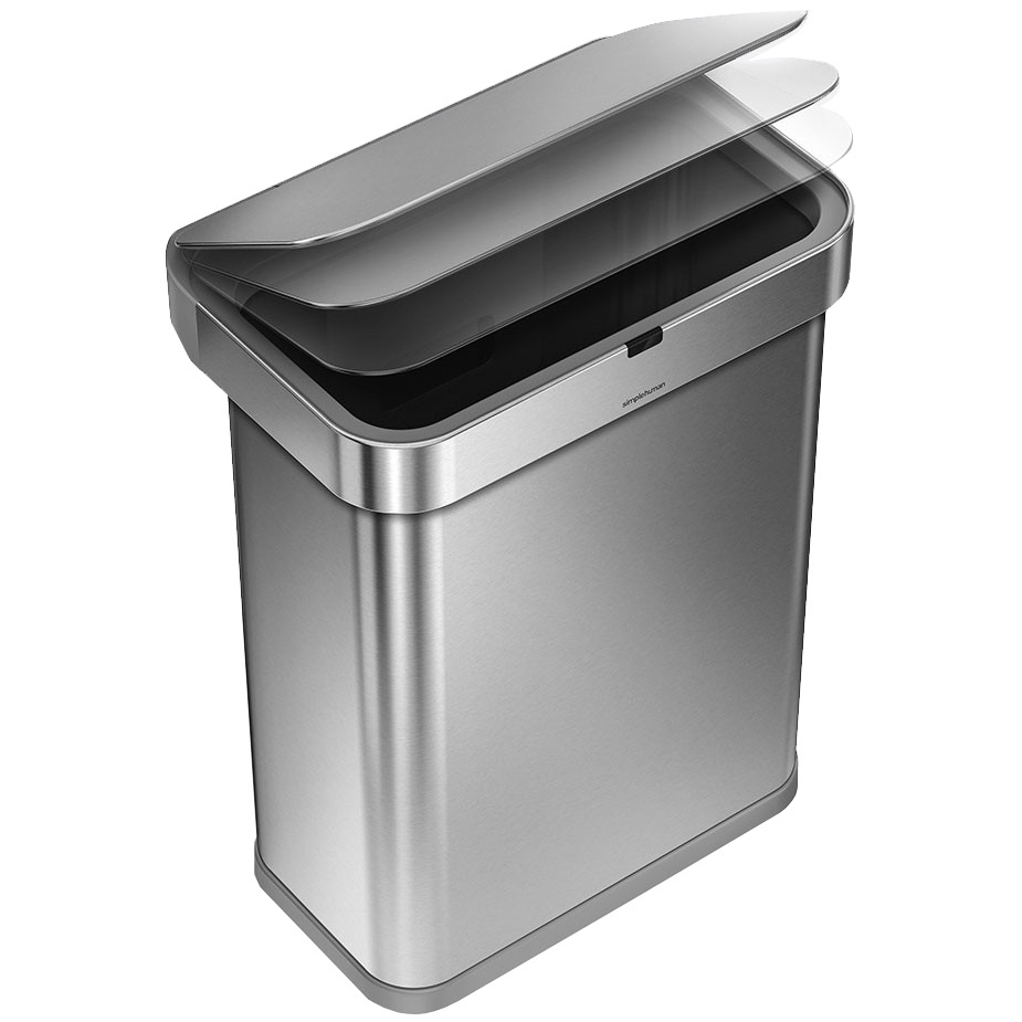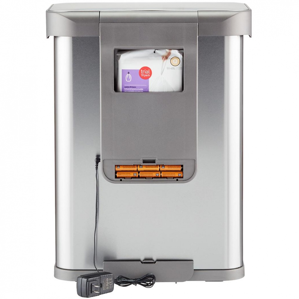 A Simplehuman érintés nélküli szemeteskosarakat úgy tervezték és hozták létre, hogy még könnyebbé tegyék az életét, mint amilyen eddig volt. Amikor a kezét vagy egy tárgyat a szemetes infravörös érzékelőjéhez helyezi, a fedél automatikusan kinyílik, gyorsan és csendesen. A nyitást egy kiváló minőségű motor vezérli, amely hosszú élettartamú és nagyon csendes. Két érzékelő van a nyitáshoz, felül és elöl. Gyors mozgásra nem reagálnak, így nem nyílnak ki, amikor egyszerűen elmegy mellettük, hanem csak akkor, amikor tényleg kidobna valamit. A Simplehuman RECTANGULAR érintés nélküli szemeteskosarakat még nagyobb távolságból is kinyithatók egy hangérzékelő segítségével, amely a "open can" szavakra reagál. Az anyagok tekintetében a Simplehuman érintés nélküli szemeteskosarak szabványon felüliek - luxus minőségű acélból készülnek. Biztosan mindenki értékelni fogja a hátsó részen található adagolót. A tápellátás elemekkel vagy adapterrel (az adapter része a csomagolásnak) történik.