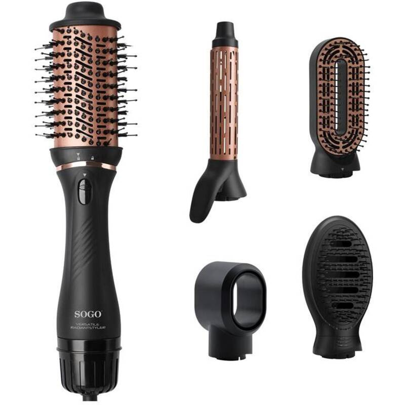 Fedezze fel a professzionális hajápolás világát a sOGO SS-3725 5in1 multifunkciós hajsütőgép. Ez a sokoldalú készülék egy készülékben egyesíti a szárítási és formázási funkciókat. A készülék középpontjában egy nagy teljesítményű BLDC motor 1 200 W bemeneti teljesítményű motorralamely gyors és hatékony légáramlást biztosít 30 000 fordulat/perc sebességgel. Ezzel a technológiával gyorsan és hatékonyan száríthatja és formázhatja a hajat minden hosszúságban, olyan eredményekkel, amelyek egy professzionális szalonhoz méltóak.