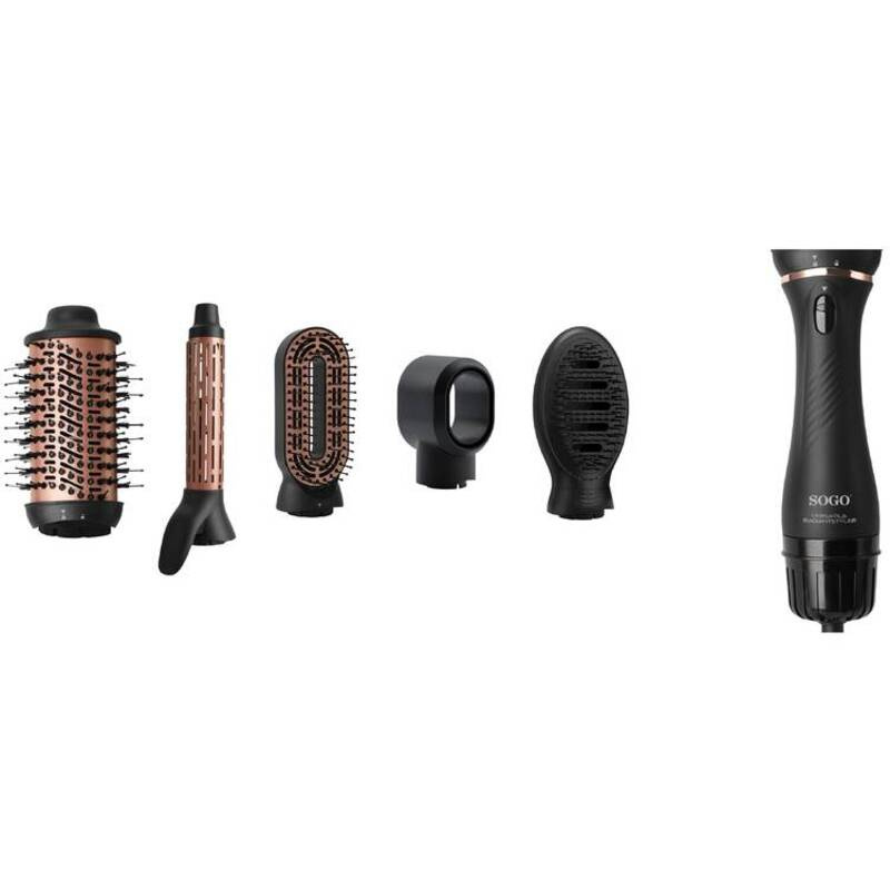 - A mellékletek száma: 5 (hajkefe, hajsűrítő, hajsütővas, vasalókefe és ovális kefe)