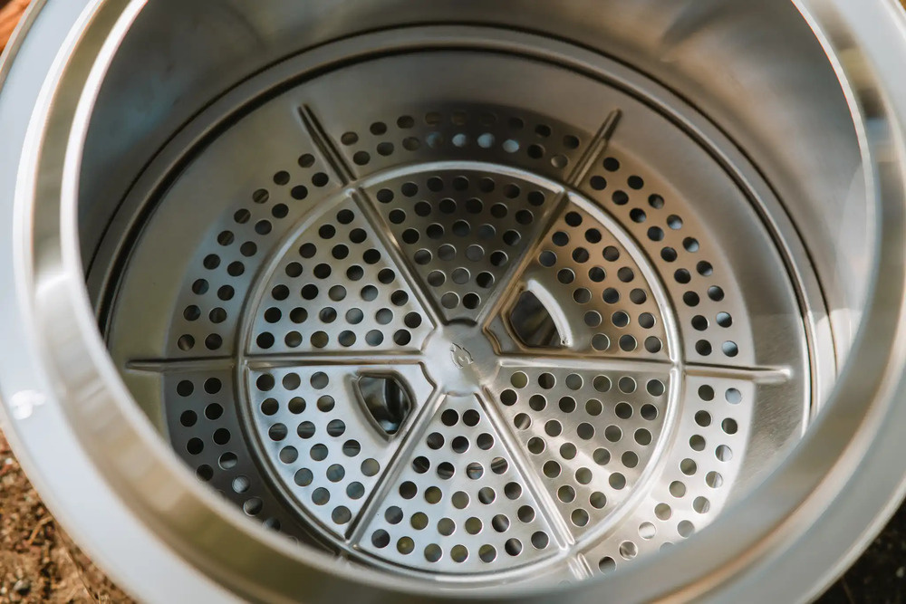 - Alkatrészek: alap, kád dupla héjjal, rozsdamentes acél gyűrű, tüzelőanyag-rostély, hamutartó