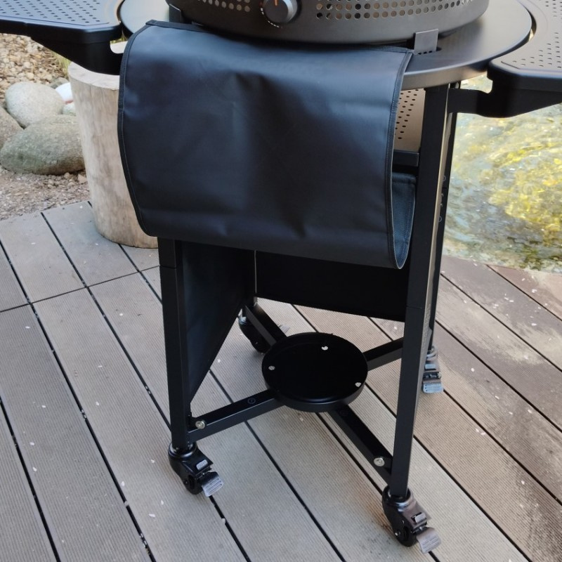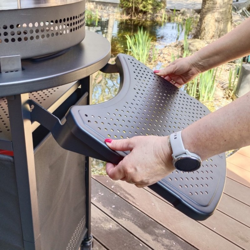 Bemutatjuk a kifejezetten a Solo Stove gázüzemű pizzasütőhöz tervezett praktikus mobil asztalt, amely a funkcionalitást átgondolt dizájnnal ötvözi. A kiváló minőségű, hidegen hengerelt acélból készült elegáns segédeszköz masszív konstrukcióval és fekete kivitelben készült, amely modern megjelenést kölcsönöz kertjének vagy teraszának. A 90,8 cm-es magasságával ideális munkapozíciót biztosít a kényelmes sütéshez. Praktikus megoldást kínál a két összecsukható, 30,5 x 47 cm-es oldalsó polcnak köszönhetően, amelyek kihajtva 121,9 cm-es teljes szélességűre növelik a munkaterületet. Ezek a polcok tökéletesen alkalmasak a hozzávalók előkészítésére vagy a kész ételek tálalására, és szükség esetén egyszerűen összecsukhatók. A sütő alatt egy másik praktikus polcot talál a tartozékok tárolására, míg alul egy speciálisan kialakított hely van a gázpalack biztonságos tárolására. A mobilitásról négy kiváló minőségű, gumírozott, fékkel ellátott görgő gondoskodik, amelyekkel a kocsit könnyedén oda lehet vinni, ahová csak kell, majd biztonságosan rögzíteni a helyén. Az anyag felülete zsírálló, ami jelentősen megkönnyíti a karbantartást és a tisztítást. A 45,1 cm-es teljes mélységével és 19,5 kg-os súlyával az asztal stabil, mégis kompakt megoldást jelent a szabadtéri főzéshez. Ez a multifunkcionális kocsi nem csupán egy praktikus kiegészítő, hanem minden pizzasütés vagy grillezés nélkülözhetetlen segítője lesz.