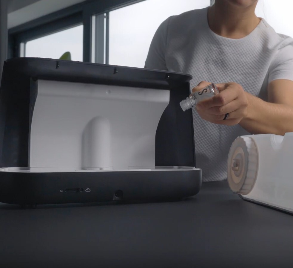 Az ezüstözött fertőtlenítő vízkocka higiénikus párásítástbiztosít baktériumok elszaporodása nélkül. Ha az Ön vize túl kemény, javasoljuk az Anticalc patron megvásárlását a vízkőlerakódás csökkentése érdekében. Ez biztosítja, hogy a Ben párásító körüli bútorokon nem maradnak nyomok.