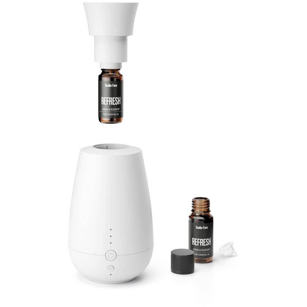 Élvezze az aromaterápia hatását a Stadler Form vagy a Terra 100%-os tisztaságú illóolajokkal. Az Ella aromadiffúzorban más alkoholmentes illóolajokat is használhat.