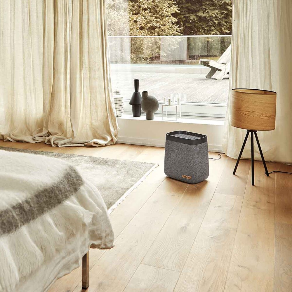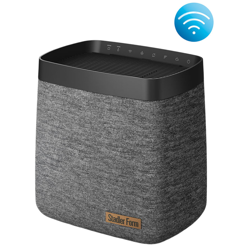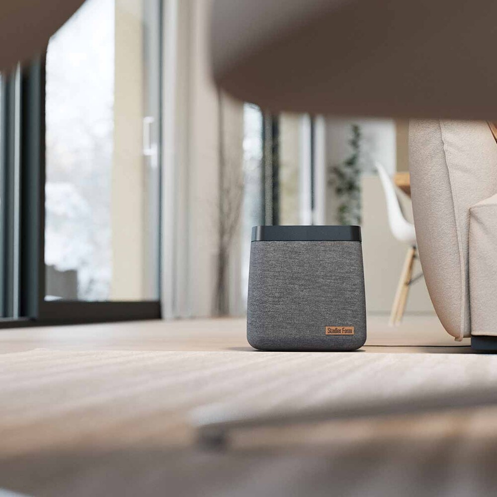 Kihagyhatatlan, elegáns, prémium. Ez a Karl párásító kialakítása. Szürke textilfelületével és a barna bőrön található finom Stadler Form logóval hívja fel magára a figyelmet . A kezelőszervek és a LED-jelzők a felső panel belsejében vannak elrejtve. Ez nem zavarja a Karl párásító egyedi kialakítását.
